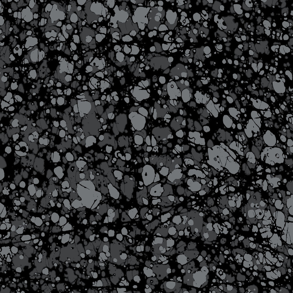 Small to medium mosaic print in greys, charcoals and black on a charcoal / black background.